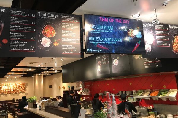 Begeistern Sie Ihre Kunden durch visuell ansprechende Speisekarten mit bewegenden Effekten. Während Ihre Kunden in der Schlange stehen um Ihre Bestellung aufzugeben, können Sie Sonderangebote, Beilagen oder Getränke zu Ihren Menüs präsentieren.