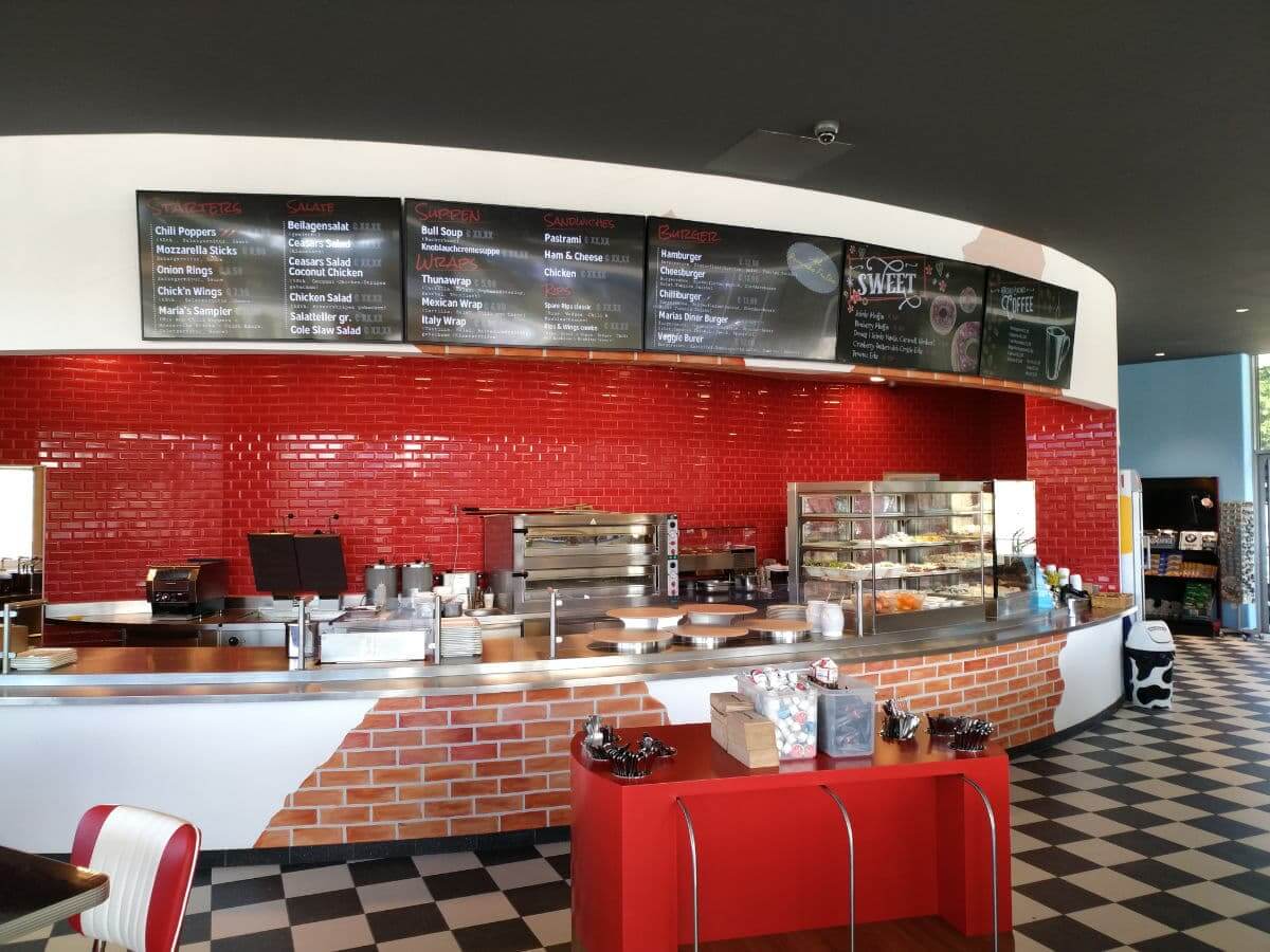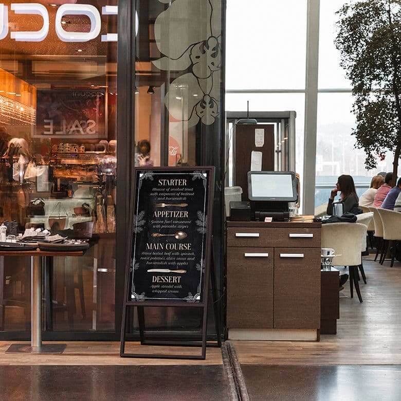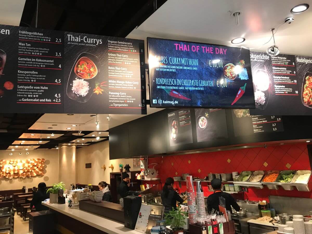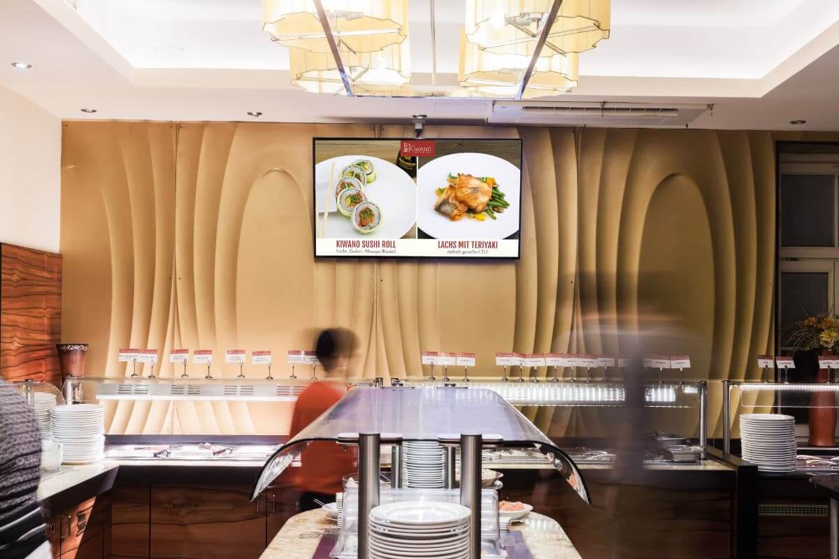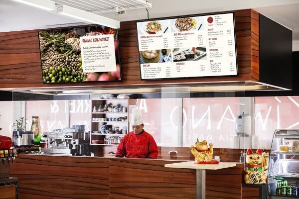 Begeistern Sie Ihre Kunden durch visuell ansprechende Speisekarten mit bewegenden Effekten. Während Ihre Kunden in der Schlange stehen um Ihre Bestellung aufzugeben, können Sie Sonderangebote, Beilagen oder Getränke zu Ihren Menüs präsentieren.