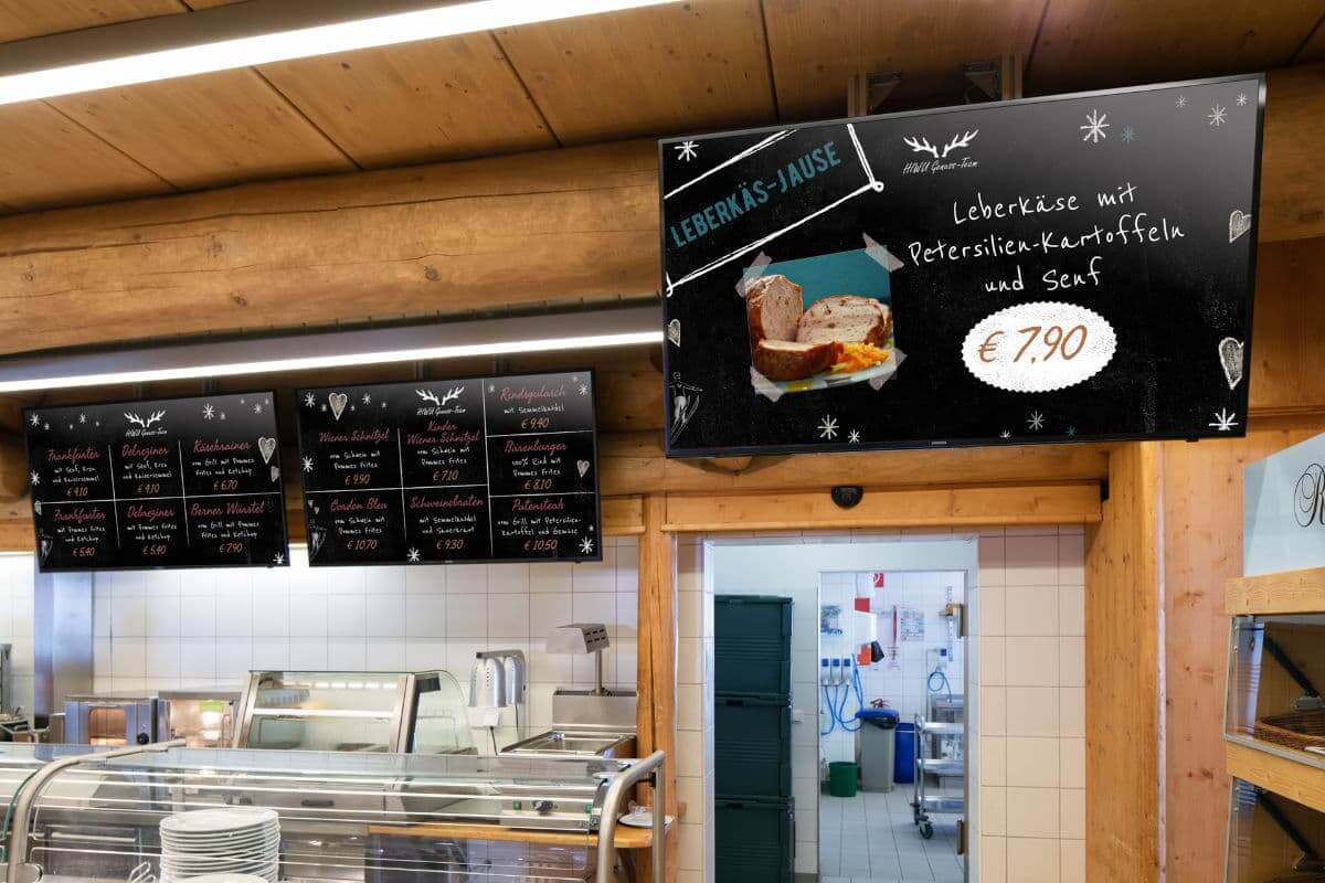 Menüpläne und wöchentliche Speisepläne sowie Angebote präsentieren ohne großen Aufwand. Immer aktuell und auf mehreren Bildschirmen gleichzeitig präsentieren.