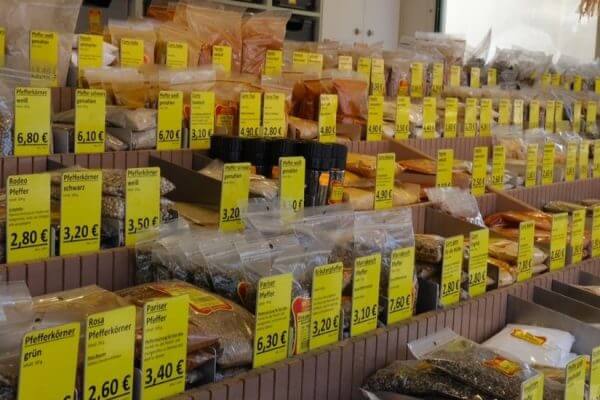 Preisauszeichnung auf dem Marktstand: Messner Gewürze