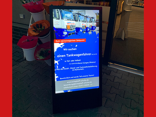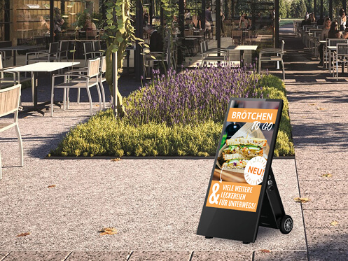 Zusätzliche Spontankäufe durch gezielte Tagesempfehlungen mit wetterfesten und akkubetriebenen Outdoor-Displays