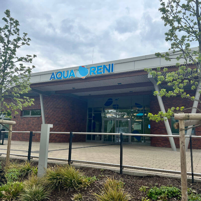 Was bedeutet „Aqua Reni“? Der Begriff „Aqua“ ist lateinisch für „Wasser“. Es steht sinnbildlich für das Badevergnügen im Schwimmbad.
