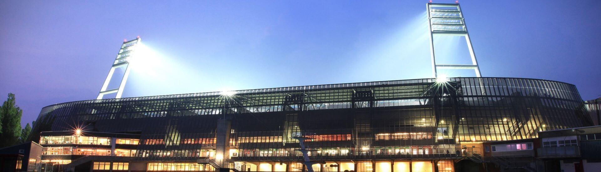 Das Bremer Weserstadion – eine der schönsten Arenen in Deutschland – liegt direkt am gleichnamigen Fluss, in der Pauliner Marsch im Ortsteil Peterswerder. 1909 wurde dort die erste Holztribüne erstellt, durch die Jahre wurde das Stadion immer weiter aus- und umgebaut. In den Jahren 2008 und 2011 wurde die bislang größte Baustelle errichtet. Seit der Fertigstellung gibt es über 42.000 Plätze, 4 Flutlichtmasten mit je 51 Strahlern, zwei LED-Videodisplays von ca. 74m2, 58 Überwachungskameras, die durch die Polizei gesteuert werden.