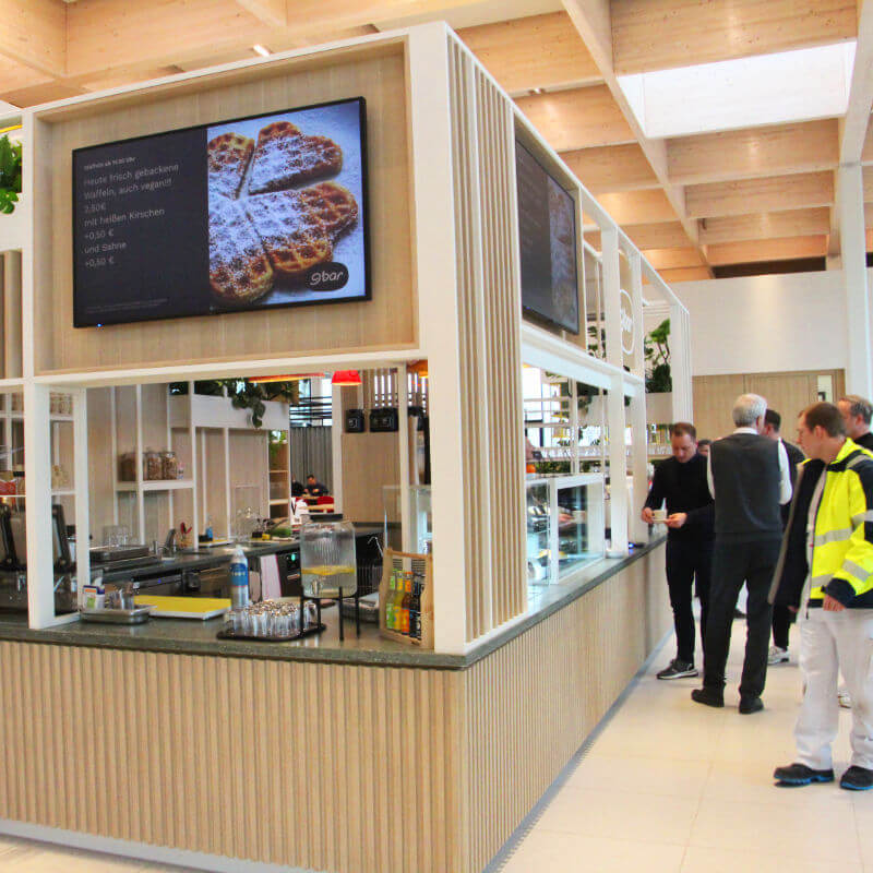 In Zusammenarbeit mit apetito entstand eine Schnittstelle, die eine automatisierte Darstellung der Daten auf den bereits vorhandenen Bildschirmen in den Betriebsrestaurants ermöglicht. So können Menüs, Angebote, Ankündigungen und weitere Inhalte stets aktuell und interaktiv präsentiert werden. In Kombination mit dem durchdachten Gesamtkonzept von apetito entsteht eine innovative Lös