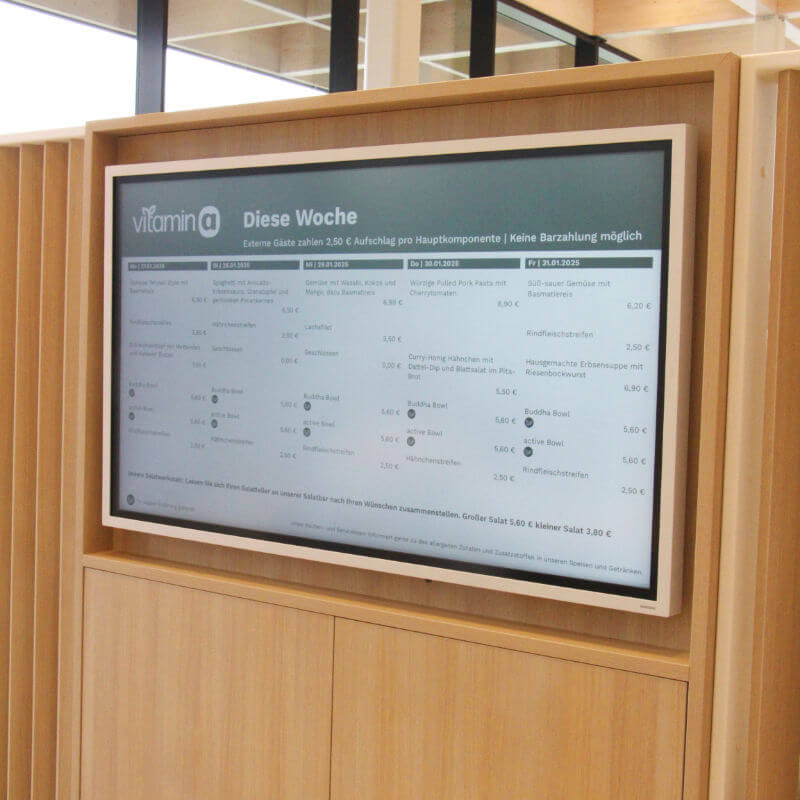 apetito verwaltet sämtliche Wochenpläne und Menüinformationen in einem internen System. Dank einer speziell entwickelten Schnittstelle werden diese Daten automatisch aufbereitet und mit den passenden Überschriften und Produkten direkt auf den Bildschirmen in den Betriebsrestaurants angezeigt. Egal ob aktuelle Menüs, Sonderaktionen oder wichtige Hinweise – die digitale Kommunikation war noch nie so einfach, flexibel und effizient.