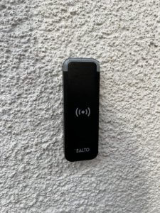 Geliefert wurden: 1 x Encoder, 1 x Updater Box, 15 x Neo elektronische BLE Mifare DESFire Zylinder, 1 x Portables Programmiergerät, 1 x Pro Access Space + SMARTentry Bausteine.