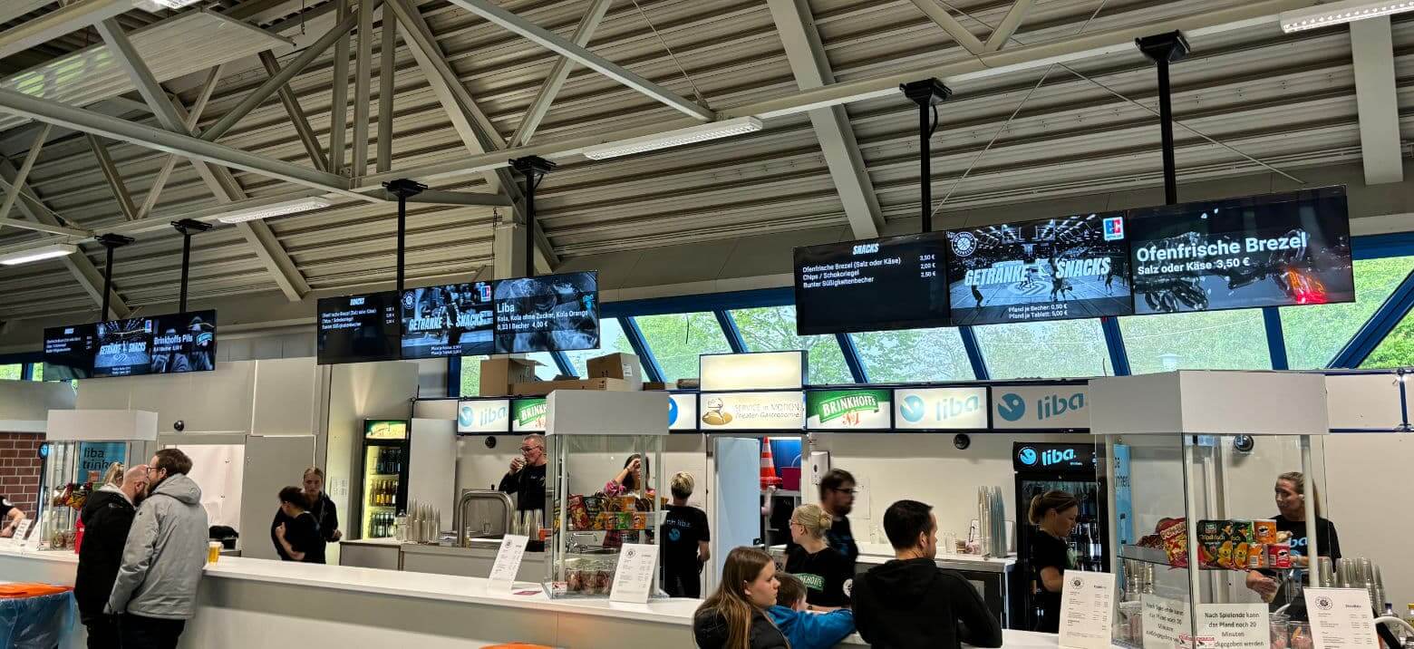 Ab sofort freut sich die Service in Motion, dass sie keine statischen Preistafeln mehr haben - dafür aber digital, animierte Preisauszeichnung und gleichzeitig können so zusätzliche Angebote, Informationen und Werbeanzeigen optisch anspruchsvoll den Fans und Gästen bei den Spielen vom USC Münster, den Uni Baskets Münster und auch bei weiteren Events dargestellt werden.