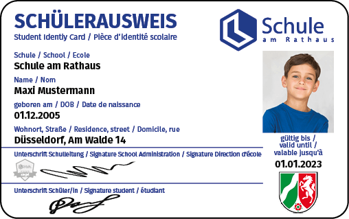 Egal, ob auf dem Smartphone oder gedruckt als kompakte Karte, mit Schülerausweisen weisen sich sowohl Kinder und Jugendliche Ihrer Schule als auch von berufsbildenden Schulen aus. Und nicht nur das: Mit einem Schülerausweis können Sie in Ihrer Schule z. B. den Verleih in der Bibliothek steuern. Das funktioniert mit einem Barcode sowohl über den digitalen Ausweis auf dem Handy als auch mit der gedruckten Karte.